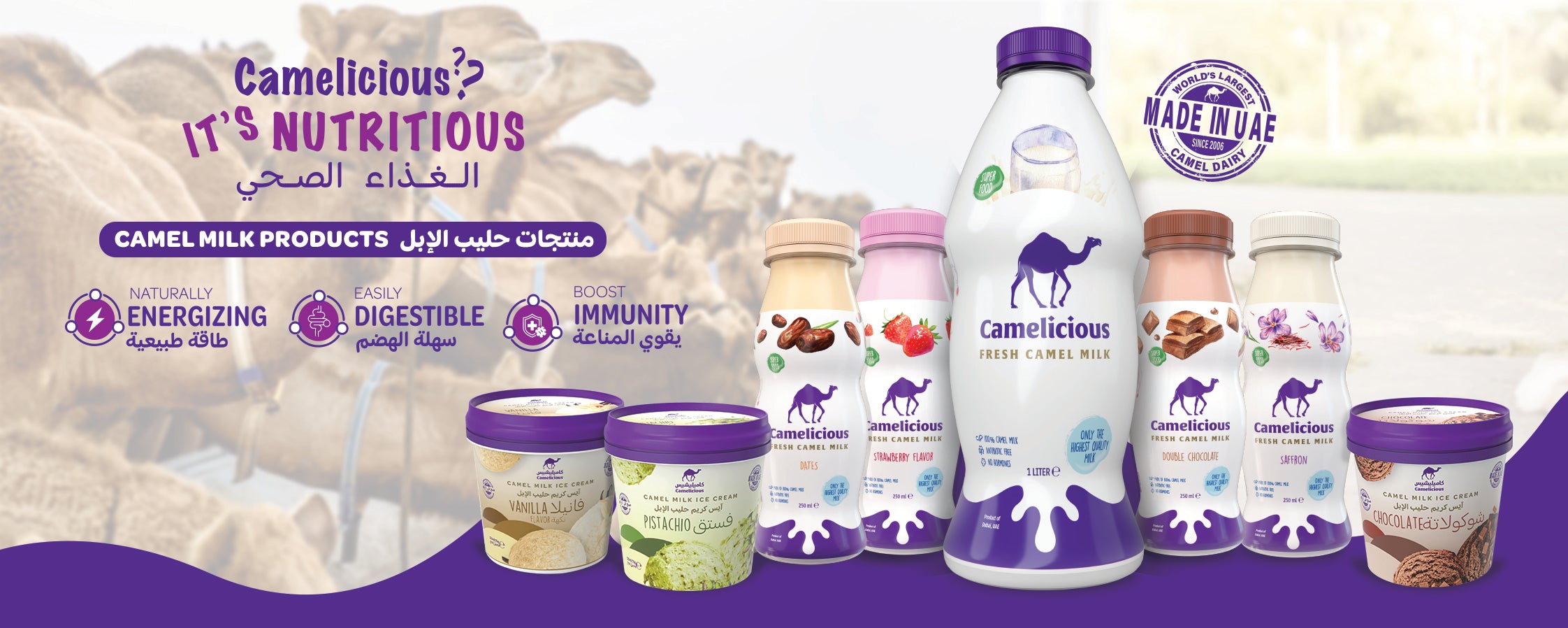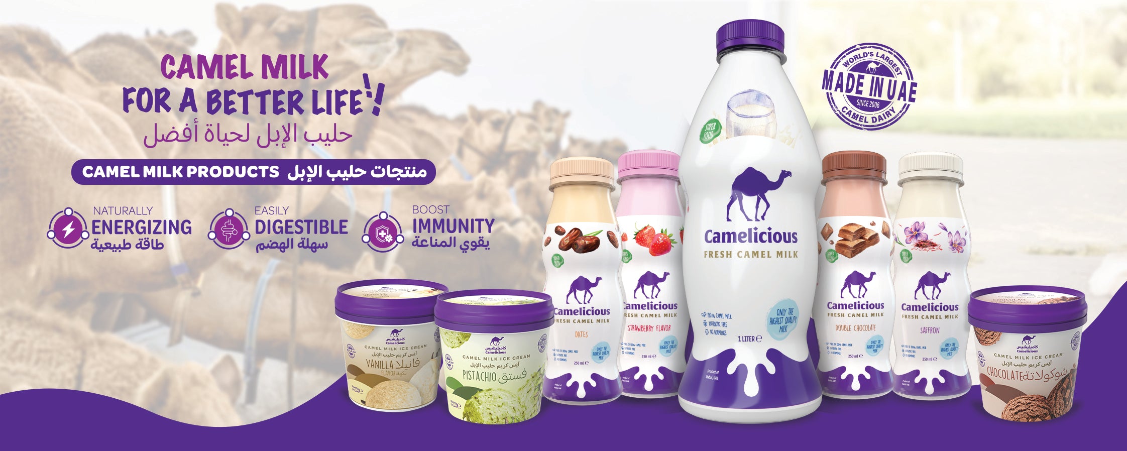 Camelicious carries the responsibility of sharing the treasures of camel milk benefits all over the world. Delivering the best, freshest and healthiest camel milk products, ranging from milk to icecream. We are your local super food, that adds great health benefits to your daily lifestyle.