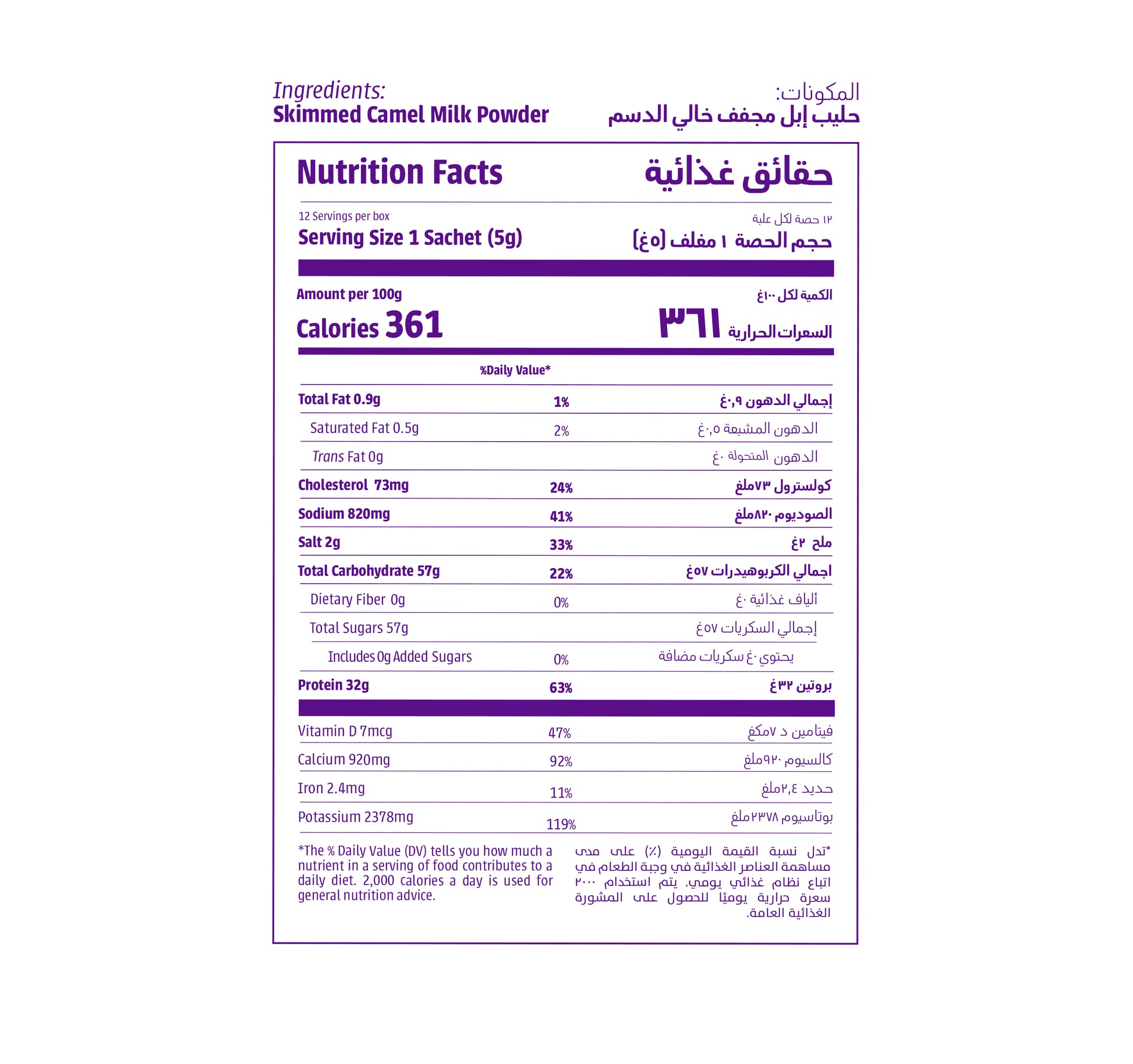 Skimmed Camel Milk Powder 5gm x 12 sachets